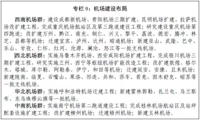 加强西部地区枢纽机场扩容改造,建设成都新机场,建成重庆机场三期改扩建工程。